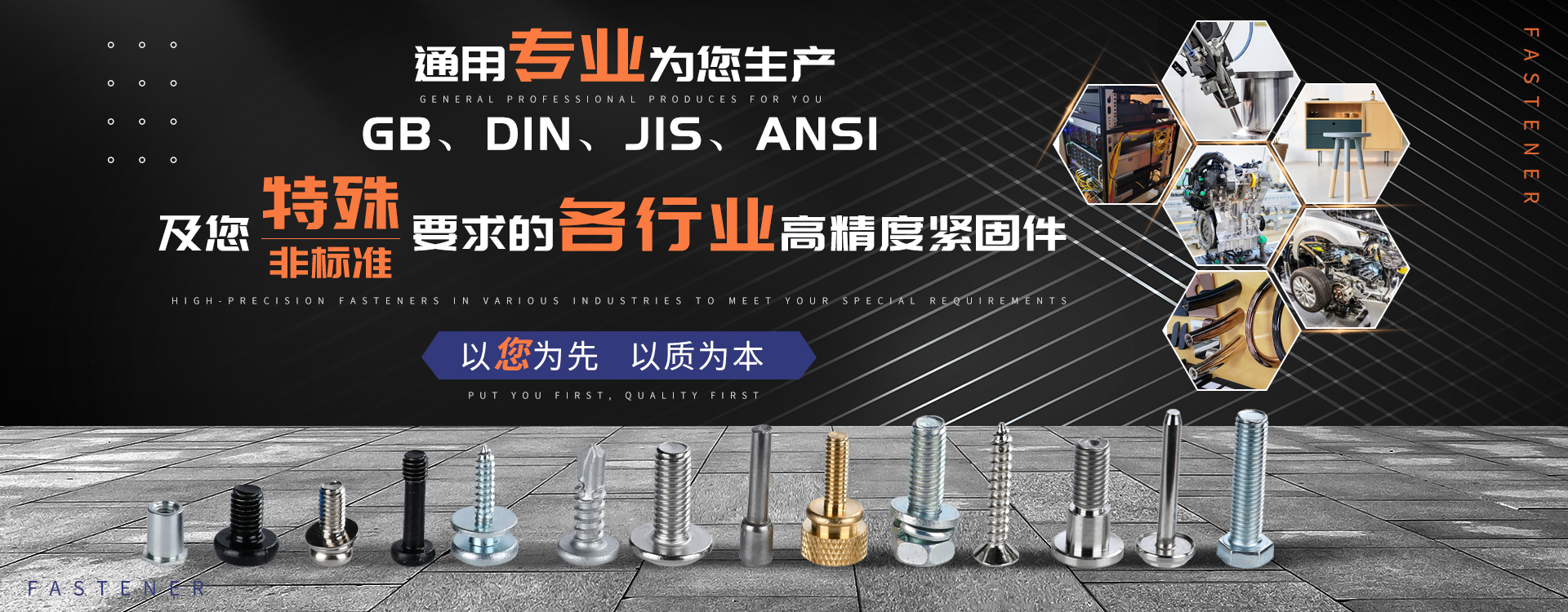 中山市通用螺絲制造有限公司成立于1987年,工廠坐落于廣東四小虎之一的中山市,北連廣州,毗鄰港澳。總占地面積14000m 2,足有兩個足球場。1998年通過德國萊茵TUV ISO9002認證,于2002年通過TUV ISO9001:2000認證。2008年通過ISO 14000認證。我司主營自攻螺絲、組合螺絲、機械螺絲、防松螺絲等標準和非標準件,既可按客戶的要求提交所需的產品,也可為客戶量身定做所需產品。我司擁有專業的產品檢測隊伍和投影分析儀、金相、硬度計(韋氏和洛氏)、扭矩力測試計等完善的檢測設備,為電子、電器、五金塑料、衛浴、家具、機械、汽配等行業提供符合歐盟質量、環保要求的產品2006年,我司自主開發的ERP管理系統,使我們的生產和服務效率得到了極大的提高。 經過三十多年地摸爬滾打,依靠眾多新老顧客的支持,通用螺絲逐漸成長為國內知名的緊固件供應商。了解更多 >>
